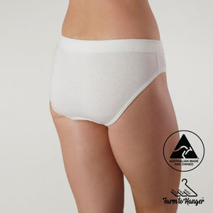 Who doesn’t love a comfy bum? Our original bikini style Comfy Bum Knickers - Multi-colour Triple Set is where it all began — a perfect balance of everyday comfort and timeless simplicity with one black, natural and white. Made from our superfine 100% Australian grown cotton, with an encased waistband and Oeko-Tex certified biodegradable elastic, these knickers are soft, breathable, and gentle against your skin.