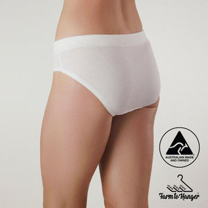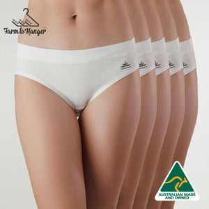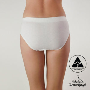 Who doesn’t love a comfy bum? Our original bikini style Comfy Bum Knickers - Five Set - White is where it all began — a perfect balance of everyday comfort and timeless simplicity. Made from our superfine 100% Australian grown cotton, with an encased waistband and Oeko-Tex certified biodegradable elastic, these knickers are soft, breathable, and gentle against your skin.