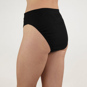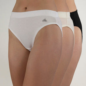 Our High Cut Comfy Bum Knickers - Mutli Colour Triple Set are beautifully flattering and endlessly wearable. This multi set comes in one pair of black, natural and white and sit softly at the natural waist, with a high cut leg that creates a graceful, lengthening line while still offering full coverage at the back. A style that blends comfort with a hint of allure — soft where you want it, a little playful where you love it. Made from our superfine 100% Australian grown cotton and finished with Oeko-Tex certified biodegradable elastic, they’re crafted to move with you and be loved for years to come. Every garment begins with care — for you, for those who make it, and for the earth we share.