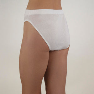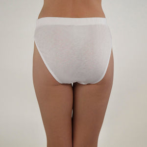 Our High Cut Comfy Bum Knickers - White are beautifully flattering and endlessly wearable. These knickers sit softly at the natural waist, with a high cut leg that creates a graceful, lengthening line while still offering full coverage at the back. A style that blends comfort with a hint of allure — soft where you want it, a little playful where you love it. Made from our superfine 100% Australian grown cotton and finished with Oeko-Tex certified biodegradable elastic, they’re crafted to move with you and be loved for years to come. Every garment begins with care — for you, for those who make it, and for the earth we share.