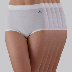 High Waist Low Leg Comfy Bum Knickers - Single Colour Five Set - White