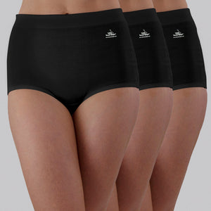 High Waist Low Leg Comfy Bum Knickers - Triple Set - Black
