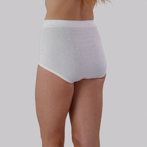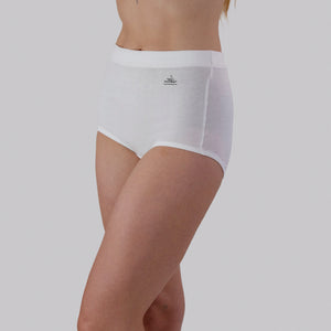 Our newest edition to the Comfy Bum Knicker range the High Waist Low Leg Comfy Bum Knickers - Triple Set - White offers maximum coverage, complete comfort. Designed to sit above the belly button with a low leg line, this style offers our fullest coverage without moving into a short. Crafted from our 100% Australian grown sustainable cotton and finished with Oeko-Tex certified biodegradable elastic, they keep you comfortably supported all day — so comfortable you’ll forget you’re wearing them. Every garment begins with care — for you, for those who make it, and for the earth we share.