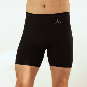Natural support with extra coverage. Our Men's Comfy Trunks, Long Leg - Black are designed for breathability and all-day comfort, with a longer leg cut that stays in place and moves easily with you. Finished with a biodegradable elastic waistband, they’re built to support you now and return safely to the earth when their time is done. Every garment begins with care — for you, for those who make it, and for the earth we share.