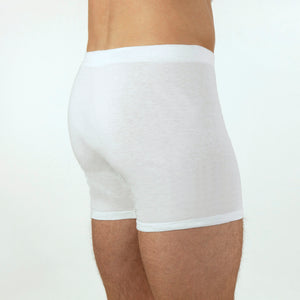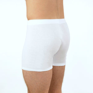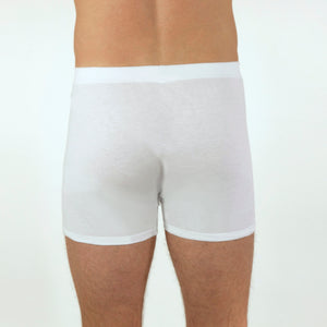 Natural support, zero compromise. Our Men's Comfy Trunks, Short Leg - Triple Set - White are thoughtfully designed for breathability and lasting comfort, with a short leg cut that moves easily with your body. Finished with a biodegradable elastic waistband, they’re built to provide support today and return safely to the earth when their journey is done. Every garment begins with care — for you, for those who make it, and for the earth we share.