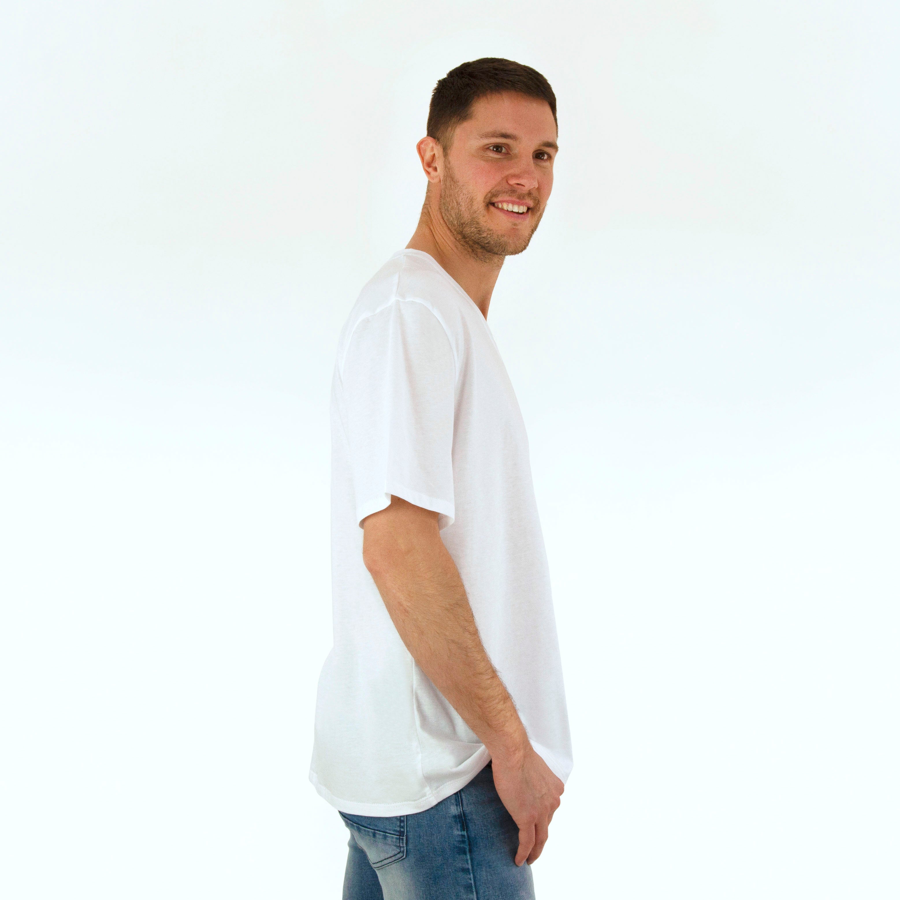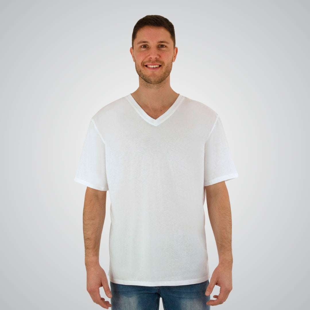 The Men's Classic V - White  is a great all round t-shirt! The short sleeve t-shirt is made with our beautifully soft 100% Australian sustainably grown cotton and handcrafted in Victoria. An ethical sustainable tee that is 100% Australian Made and perfect with your favourite pair of jeans.