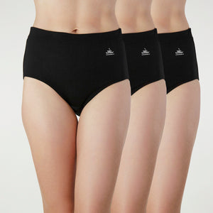 Natural Waist Comfy Bum Knickers - Triple Set - Black