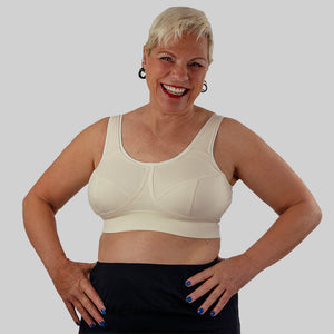 Larger bust ladies definitely need something that has support and contouring.  Our Comfy Curves Cotton Bra - Natural has been made with 100% Australian sustainable cotton fabric and encased Oeko-Tex Biodegradable elastic. This great design gives full cup support and all day comfort from size 10A-22H