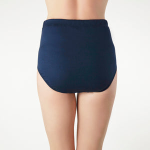 The knickers our customers can’t live without. Our High Waist Comfy Bum Knickers - Navy are loved for their full coverage, above-the-belly-button fit, and soft, breathable feel. Made from our superfine 100% Australian grown sustainable cotton, these knickers are lightweight, breathable, and designed to keep you cool and dry. Finished with Oeko-Tex certified biodegradable elastic, they sit softly against your skin — so comfortable you’ll forget you’re wearing them.
