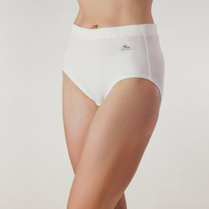Classic comfort with an effortless fit. Our Natural Waist Comfy Bum Knickers - Triple Set - White sit naturally at the waist, offering a timeless silhouette with gentle curves and full coverage at the back. Soft and breathable, they’re the pair you’ll reach for every day — reliable, flattering, and beautifully simple. Made from our superfine 100% Australian grown cotton and finished with Oeko-Tex certified biodegradable elastic, they’re created to move with you, last through countless wears, and return safely to the earth when their journey ends. Every garment begins with care — for you, for those who make it, and for the earth we share.