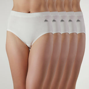 Natural Waist Comfy Bum Knickers - Five Set - White
