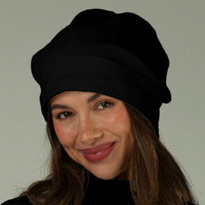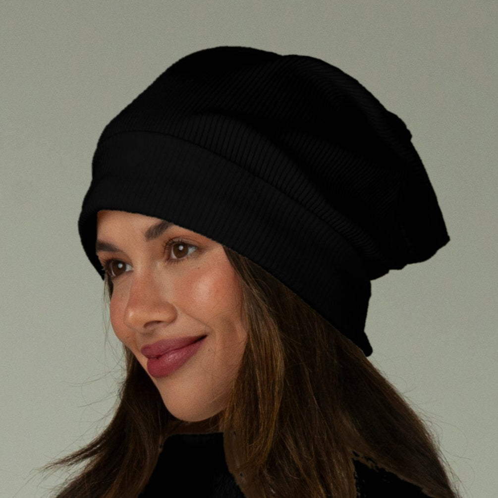 Our brand new Pure Cotton Slouch Beanie - Black is made from our newest fabric, a beautiful 100% cotton ribbed fabric developed in Melbourne for us. With every garment handcrafted at our ethical Melbourne workshop.   100% pure cotton. traceable, transparent, ethical and sustainable, what better way to enjoy what you wear?