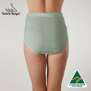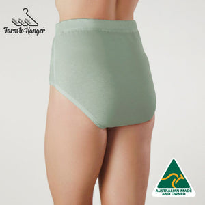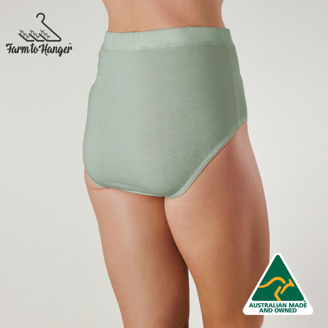 The knickers our customers can’t live without. Our High Waist Comfy Bum Knickers - Mint are loved for their full coverage, above-the-belly-button fit, and soft, breathable feel. Made from our superfine 100% Australian grown sustainable cotton, these knickers are lightweight, breathable, and designed to keep you cool and dry. Finished with Oeko-Tex certified biodegradable elastic, they sit softly against your skin — so comfortable you’ll forget you’re wearing them.